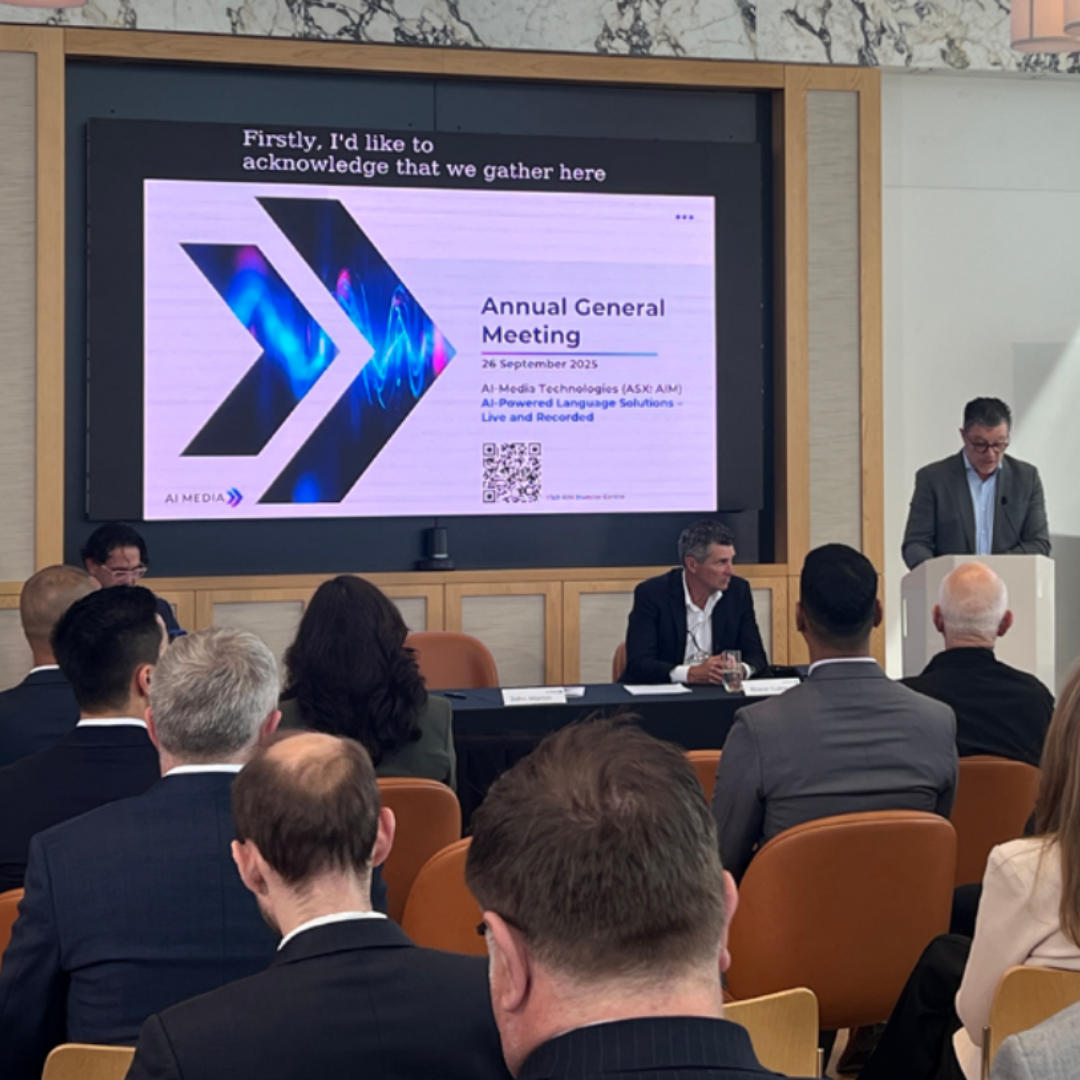 As a global leader in captioning and translation technology, AI-Media set out to make its 2025 Annual General Meeting a live demonstration of accessibility done right. The goal was to deliver high-quality, reliable captions for both in-room and online attendees, ensuring full inclusivity and professionalism throughout the event. Previous AGMs had relied on Zoom’s built-in captioning, which offered limited accuracy and little control over formatting or transcript quality. For this year’s event, AI-Media saw an opportunity to demonstrate to ASX-listed companies and major enterprise organisations just how far AI-powered captions and translations have evolved in the past 12 months. By showcasing high accuracy LEXI Text, LEXI Voice, and a professional hybrid delivery setup, the AGM aimed to illustrate that AI-driven accessibility is now robust, reliable, and ready for the most demanding AGMs and results presentations.